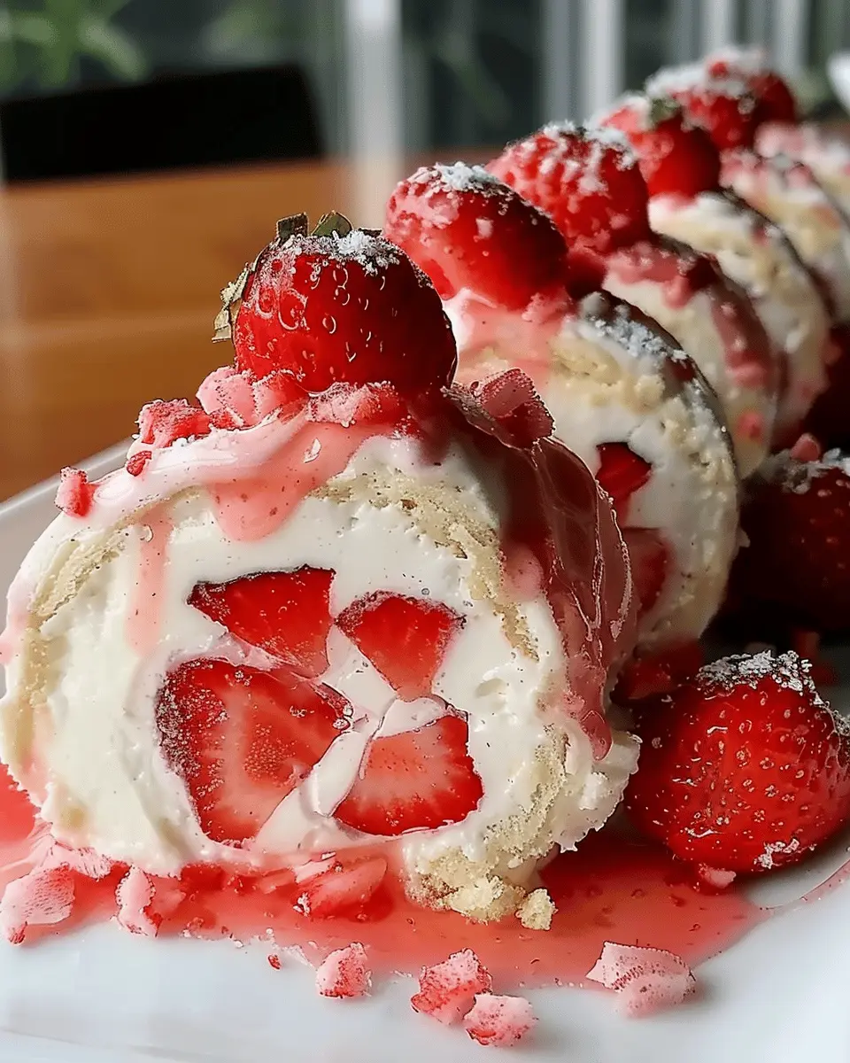 Strawberry Shortcake Cheesecake Dessert Sushi Rolls