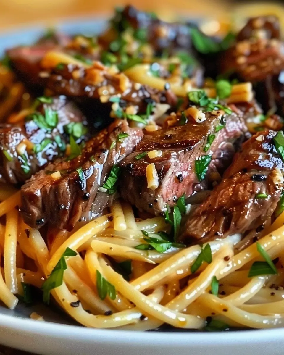 PrintSweet and Spicy Garlic Steak Pasta: A Juicy Homemade Delight