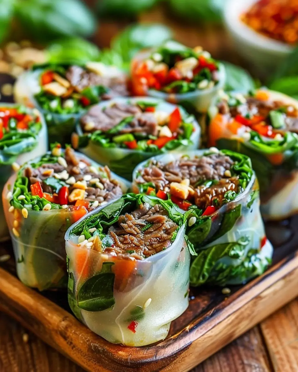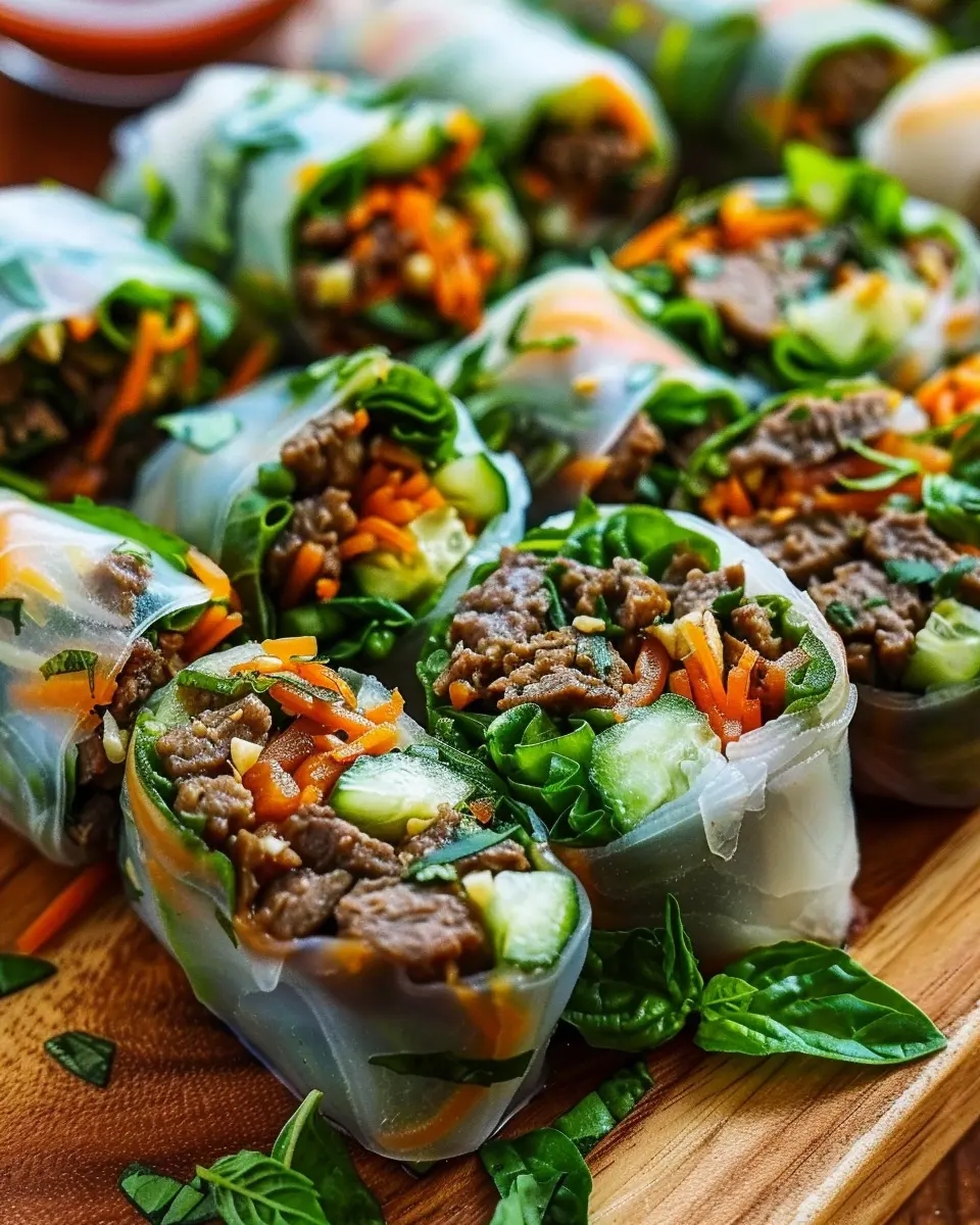 What’s more, they offer a health-conscious option that doesn’t compromise on taste. Packed with lean beef, fresh herbs, and colorful vegetables, these rolls are a great source of protein, vitamins, and antioxidants. According to the USDA, incorporating fresh herbs like basil can boost your immune system and enhance overall well-being. Why wouldn’t you want to add a punch of flavor and health to your meals?