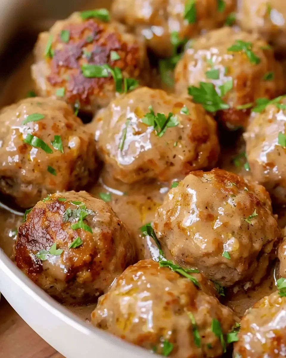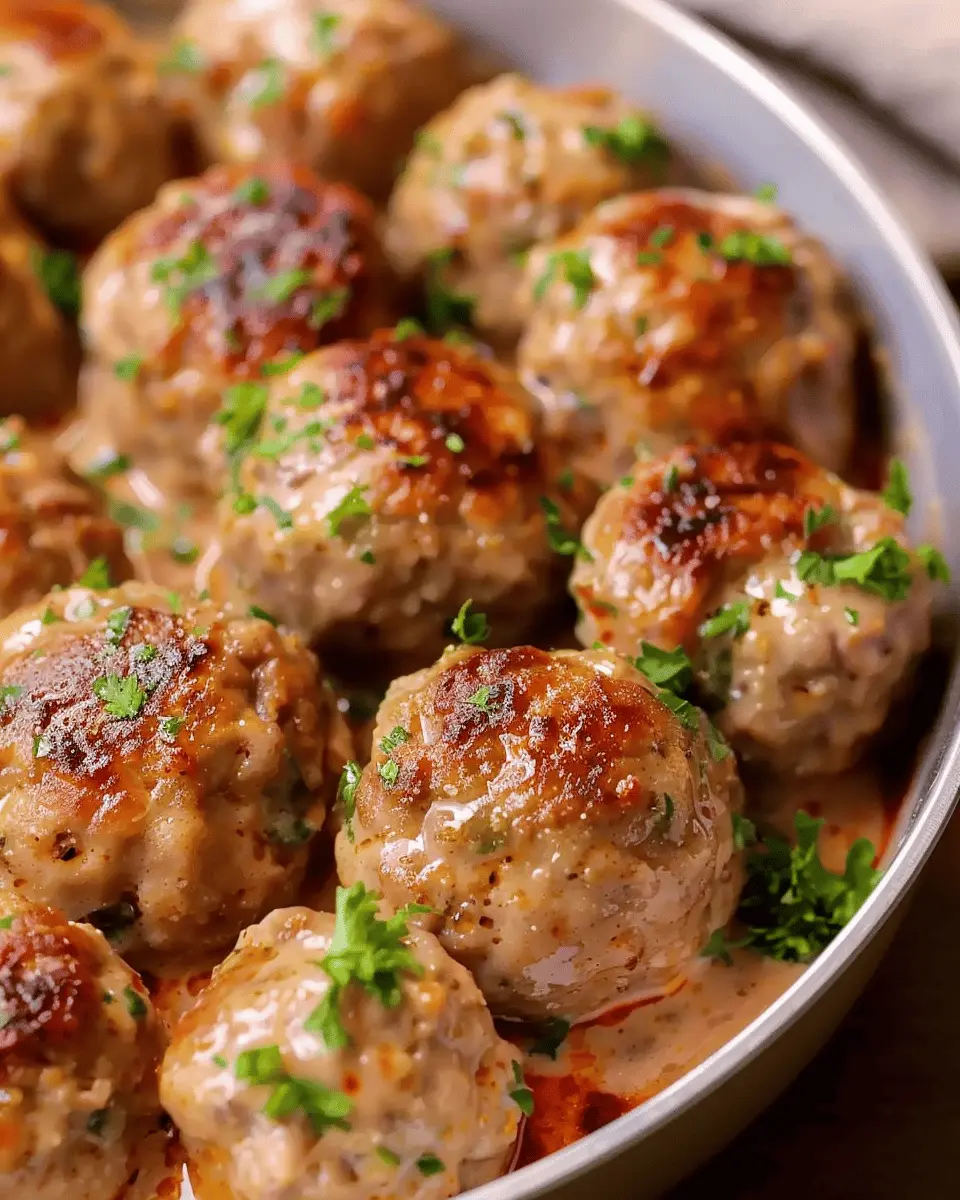 After your meatballs are browned and removed from the skillet, pour in the chicken broth and bring it to a gentle boil. Stir in the heavy cream or yogurt, allowing it to thicken. This silky sauce is where the magic happens and enhances the tender meatballs beautifully.