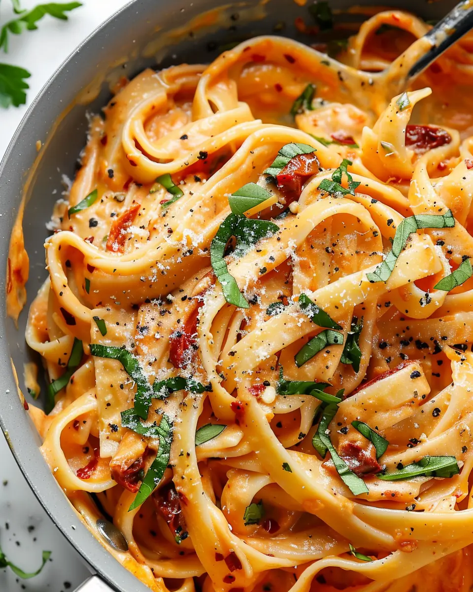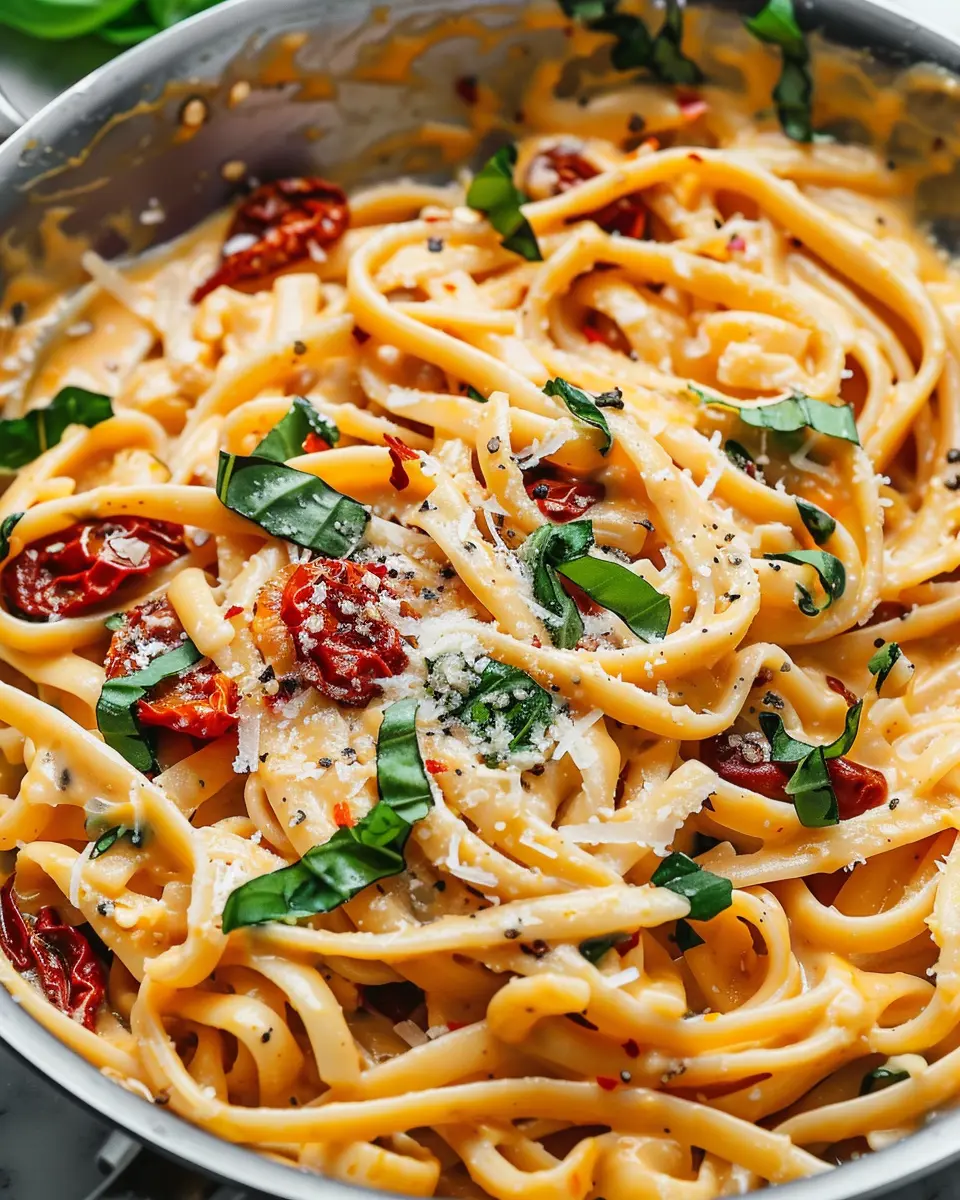 PrintVegan Creamy Sun Dried Tomato Pasta Recipe Your Family Will Love